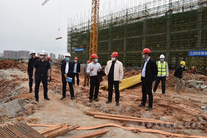 首先,吳宇雄一行來到武鳴校區(qū)一期工程項(xiàng)目施工工地進(jìn)行現(xiàn)場調(diào)研,詳細(xì)了解各項(xiàng)工程施工進(jìn)展情況及存在的問題。接著,召開調(diào)研專題匯報(bào)會(huì),聽取學(xué)院以及項(xiàng)目總包單位、監(jiān)理單位工作匯報(bào),對加強(qiáng)武鳴校區(qū)建設(shè)工作提出了明確要求。