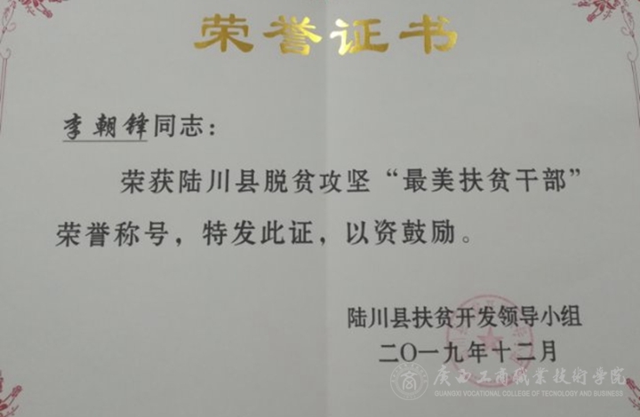 近日,陸川縣扶貧開發(fā)領(lǐng)導(dǎo)小組印發(fā)《關(guān)于表揚(yáng)2019年度陸川縣脫貧攻堅“六個最美”先進(jìn)典型的通知》,對蘇海琪等64名陸川縣脫貧攻堅(鄉(xiāng)村振興)工作隊員予以通報表揚(yáng),評選出10名“最美第一書記”,10名“最美工作隊員”,10名“最美扶貧干部”,14名“最美扶貧村支書”,10名“最美脫貧戶”,10名“最美致富帶頭人”。我院第一書記李朝鋒、劉洋在全縣眾多脫貧攻堅(鄉(xiāng)村振興)工作隊員中脫穎而出,分別喜獲“最美扶貧干部”、“最美第一書記”榮譽(yù)稱號!