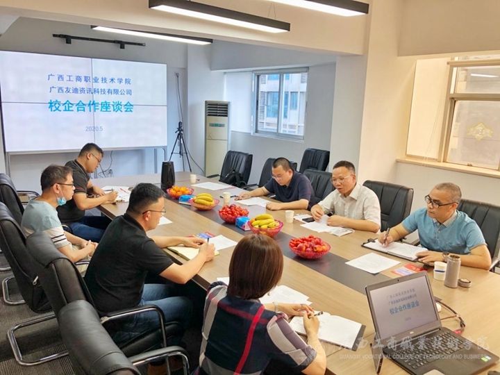 2020年5月12日上午9點,我院副院長闕勇平、財信系主任蘇波、財信系副主任裴朝東等一行人前往廣西友迪資訊科技有限公司舉行校企雙方座談會。闕勇平副院長代表學(xué)院與廣西友迪資訊科技有限公司總經(jīng)理許金禮簽訂校企合作協(xié)議并授予牌匾。