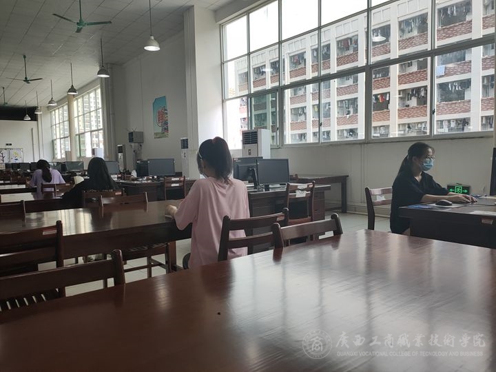 入館后,同學們很快融入安靜祥和的書香氛圍,值班老師和學助們認真做好服務工作。同學們有的在準備課程論文、畢業(yè)答辯,有的在閱讀圖書、查詢資料......師生們的專注、認真,展現(xiàn)了廣西工商職業(yè)技術學院良好的教風、學風。