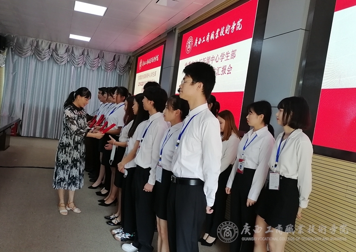 會(huì)上,覃遠(yuǎn)霞部長(zhǎng)為2019-2020年“優(yōu)秀文化貢獻(xiàn)者”頒發(fā)證書,莫惘、馮艷瓊為2019-2020年“優(yōu)秀記者”頒發(fā)證書,馮艷瓊、曹情為18級(jí)會(huì)干頒發(fā)聘書。