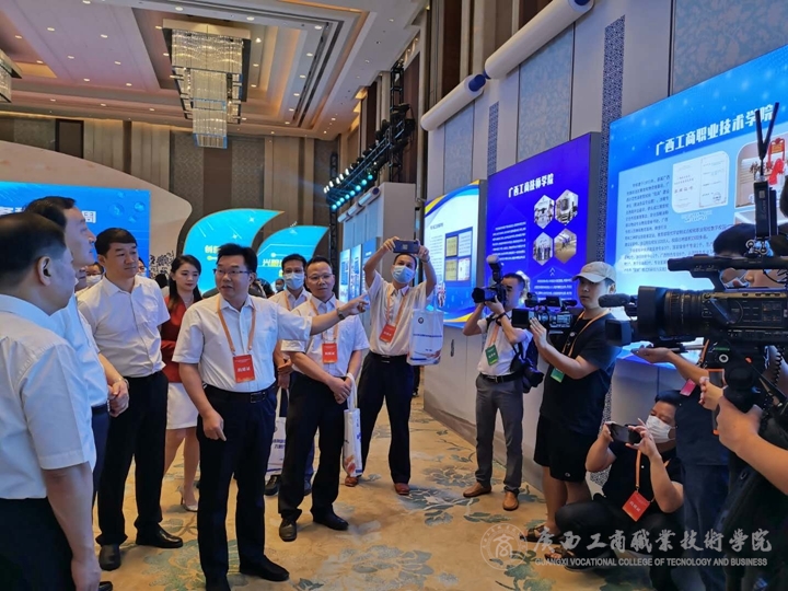 在與會領導嘉賓巡展環(huán)節(jié)過程中,吳局長特地就我們廣西參展的兩所糧食職業(yè)院校情況專門向國家糧食和物資儲備局張務鋒局長做了匯報講解。
