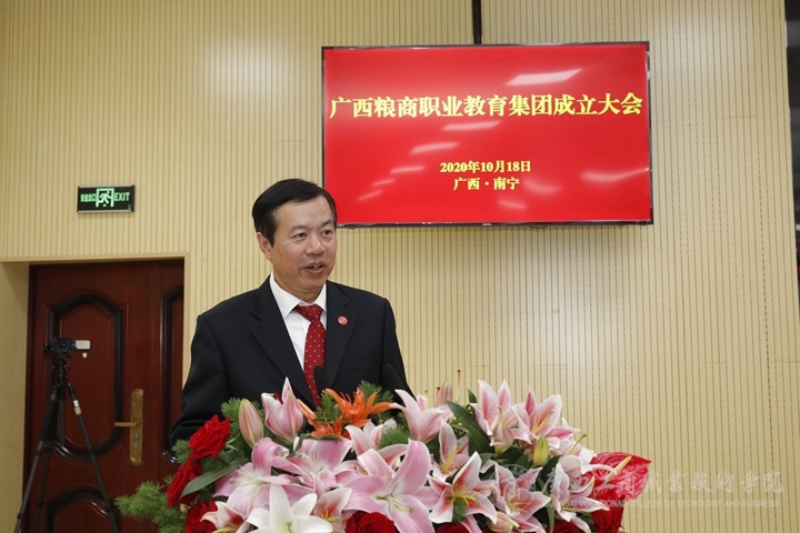 廣西工商職業(yè)技術學院黨委書記覃武云在會上致辭,他指出,隆重舉行廣西糧商職業(yè)教育集團成立大會,成立職業(yè)教育集團是貫徹落實習近平總書記關于糧食生產(chǎn)和安全的重要指示要求,是響應政府對職業(yè)教育發(fā)展的新要求和新期待的應勢之策,對全面深化教育教學改革,實現(xiàn)校企資源共享融合,充分發(fā)揮職業(yè)教育服務廣西經(jīng)濟社會發(fā)展的功能具有重要意義。他表示我們將依托職業(yè)教育集團,推進辦學體制改革,擴大優(yōu)質(zhì)教育資源,不斷提高教學質(zhì)量,彰顯專業(yè)特色,引領區(qū)域職教發(fā)展,充分發(fā)揮牽頭院校的橋梁和紐帶作用,與各成員單位緊密合作,促進職業(yè)院校與行業(yè)企業(yè)的互惠多贏,共同發(fā)展。