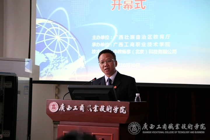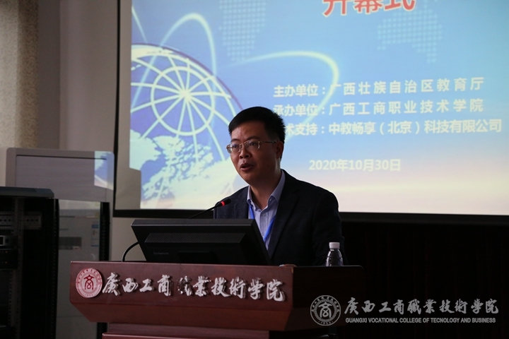 2020年10月30日,由廣西壯族自治區(qū)教育廳主辦,廣西工商職業(yè)技術(shù)學(xué)院承辦的“2020年廣西職業(yè)院校技能大賽(高職組)《市場(chǎng)營(yíng)銷技能》賽項(xiàng)”開(kāi)幕式在我院鵬飛校區(qū)2145報(bào)告廳舉行。廣西工商職業(yè)技術(shù)學(xué)院副院長(zhǎng)闕勇平、本次市場(chǎng)營(yíng)銷技能賽項(xiàng)裁判長(zhǎng)韋濱教授,本次市場(chǎng)營(yíng)銷技能賽項(xiàng)裁判代表黃堯教授,以及各參賽團(tuán)隊(duì)、指導(dǎo)老師及相關(guān)工作人員出席開(kāi)幕式。開(kāi)幕式由教務(wù)處分管工作負(fù)責(zé)人鄧潔主持。