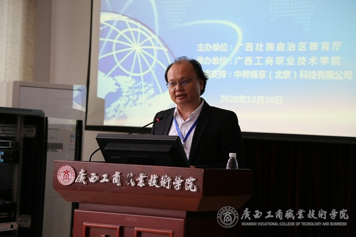 大會(huì)裁判長(zhǎng)韋濱教授講話,他指出,大賽是職業(yè)院校教育教學(xué)活動(dòng)的一種重要形式和有效延伸,提升技術(shù)技能人才培養(yǎng)質(zhì)量的重要抓手,大賽能有效提升職業(yè)院校學(xué)生技能水平,促進(jìn)職業(yè)教育專業(yè)建設(shè)和教學(xué)改革,提升教育教學(xué)質(zhì)量,是反應(yīng)我們職業(yè)教育教學(xué)水平的重要學(xué)生技能賽事;大賽的主要內(nèi)容設(shè)計(jì)圍繞市場(chǎng)營(yíng)銷專業(yè)教學(xué)標(biāo)準(zhǔn)和真實(shí)工作工程、任務(wù)與要求,通過(guò)商務(wù)數(shù)據(jù)分析、營(yíng)銷實(shí)戰(zhàn)展示和情景營(yíng)銷沙盤三個(gè)模板,重點(diǎn)考察選手的職業(yè)素養(yǎng)、實(shí)踐動(dòng)手能力、綜合判斷分析能力、創(chuàng)新創(chuàng)意水平、辦公工具軟件應(yīng)用能力、溝通表達(dá)、禮儀規(guī)范和團(tuán)隊(duì)合作精神。他對(duì)承辦院校廣西工商職業(yè)技術(shù)學(xué)院和技術(shù)支持單位中教暢享北京科技有限公司的所有領(lǐng)導(dǎo)、老師、同學(xué)們和工作人員表示由衷的感謝!會(huì)上,他以賽事裁判長(zhǎng)的身份和榮譽(yù)對(duì)本次賽事做出個(gè)人承諾,預(yù)祝參賽的27所院校的參賽隊(duì)伍,108名參賽選手比賽順利,充分發(fā)揮水平,取得滿意的成績(jī)!