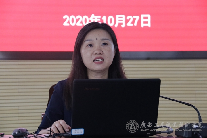 最后,我院管理學(xué)院院長高潔對《廣西職業(yè)教育工商企業(yè)管理專業(yè)及專業(yè)群研究基地工作匯報(bào)》做了簡要介紹,主要包括兩方面內(nèi)容:一是研究基地建設(shè)及落實(shí)。包括基地建設(shè)情況、建設(shè)目標(biāo)、建設(shè)落實(shí)情況。二是研究基地成果及展示。
