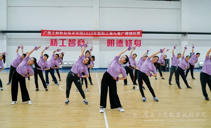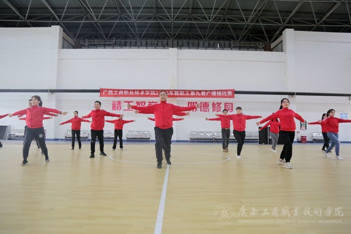 豐富教職工文體生活,提高廣大教職工身心素質(zhì),增強(qiáng)教職工團(tuán)結(jié)協(xié)作與頑強(qiáng)拼搏意識。11月20日,我院于鵬飛校區(qū)文體館二樓舉辦2020年教職工第九套廣播體操比賽。本次比賽共有各工會分會、直屬工會小組合計16個隊伍參加。學(xué)院黨委副書記、工會主席蒙啟成出席并參加了比賽。本次大賽裁判長由通識教育學(xué)院尹成功老師擔(dān)任。