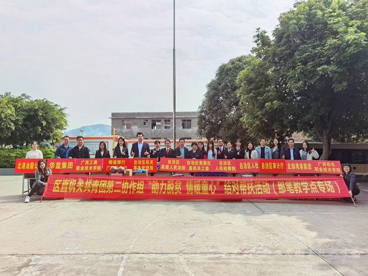 為更好地動員廣大團員青年積極主動投身脫貧攻堅戰(zhàn),在區(qū)直機關共青團第二協作組的統一部署下,2020年11月26日,學校團委代表來到南寧市興寧區(qū)四塘小學那筆教學點,開展了“助力脫貧,情暖童心”結對幫扶活動。