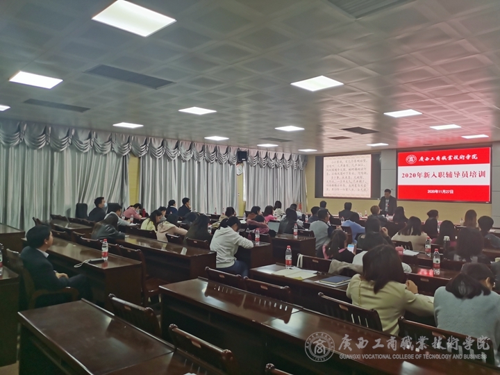 2020年11月27日下午我院在2119會議室開展2020年新入職輔導員培訓工作。學院安仲文副院長出席培訓講座。來自全院6個二級學院的43名新入職輔導員參加培訓。黨委學生工作部林雯部長主持培訓講座。廣西大學海洋學院黨總支譚運陽書記、廣西建設職業(yè)技術學院學生工作部黃克華副部長擔任主講。