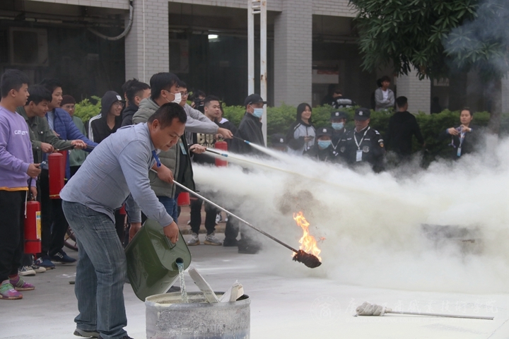 楊博華指導(dǎo)員為大家講解消防安全知識(shí)和滅火器材使用方法,指導(dǎo)學(xué)生進(jìn)行滅火操作。廣大師生員工積極參與活動(dòng),增強(qiáng)救援意識(shí)。