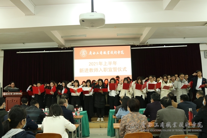 會上首先舉行了新進教師入職宣誓儀式。覃武云依次介紹我院新引進到崗的52位新教師,并對他們的到來表示熱烈歡迎。學(xué)院黨委組織部(學(xué)院人事處)部(處)、黨委教師工作部部長鄭華上臺引領(lǐng)新進教師作入職宣誓。