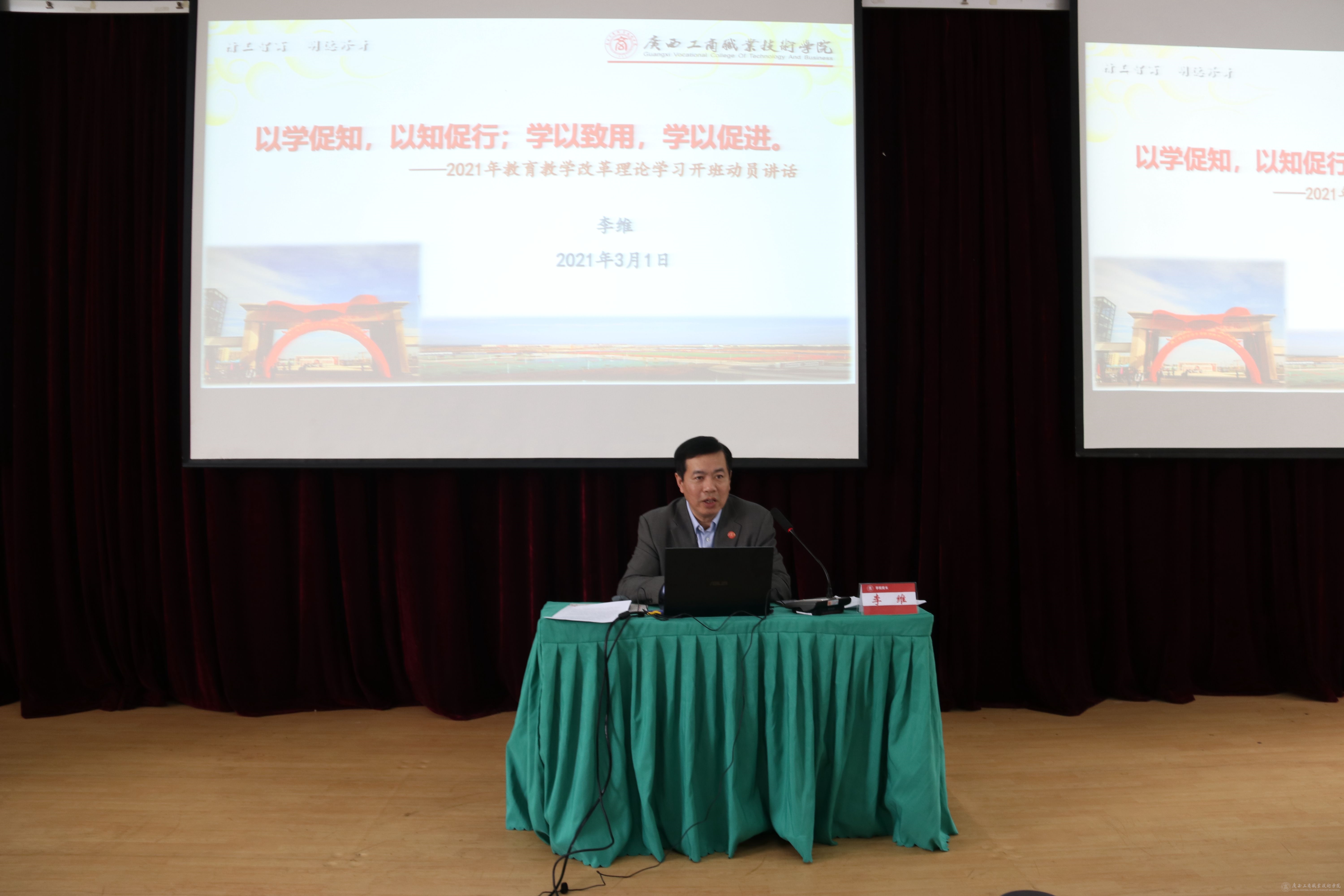 此次培訓(xùn),學(xué)院高度重視,積極行動(dòng),李維院長(zhǎng)作了主題為“以學(xué)促進(jìn),以知促行;學(xué)以致用,學(xué)以促進(jìn)”的理論學(xué)習(xí)動(dòng)員講座。李維院長(zhǎng)緊緊圍繞主題,旁征博引,層層深入,從“為什么學(xué)”、“學(xué)什么”、“怎么學(xué)”三個(gè)方面對(duì)學(xué)院今年和今后幾年的教育教學(xué)改革理論學(xué)習(xí)的內(nèi)容和要求做了整體的規(guī)劃和思路,并對(duì)近期的重點(diǎn)工作做了部署。