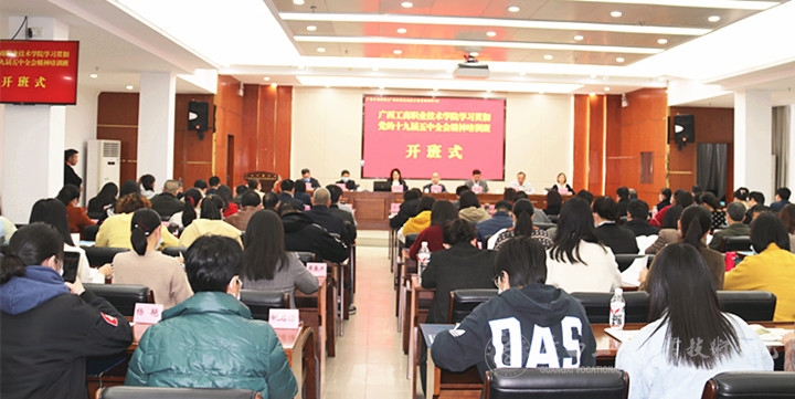 為深入學(xué)習(xí)貫徹黨的十九屆五中全會(huì)精神,切實(shí)提高干部對黨的十九屆五中全會(huì)精神實(shí)質(zhì)和思想內(nèi)涵的認(rèn)識和理解,把思想統(tǒng)一到黨的十九屆五中全會(huì)精神上來,把力量凝聚到實(shí)現(xiàn)黨的十九屆五中全會(huì)確定的各項(xiàng)任務(wù)上來,2021年3月3日下午,學(xué)院學(xué)習(xí)貫徹黨的十九屆五中全會(huì)精神培訓(xùn)班在廣西干部學(xué)院開班。學(xué)院黨委書記覃武云、院長李維、黨委副書記蒙啟成、副院長安仲文、紀(jì)委書記韋云鳳、副院長闕勇平、廣西干部學(xué)院院長(主任)吳秀芳出席了開班儀式。學(xué)院中層管理干部,分管工作負(fù)責(zé)人,基層黨組織支部書記、委員、組織員,以及其他參訓(xùn)人員共計(jì)106人參加培訓(xùn)。開班儀式由蒙啟成副書記主持。