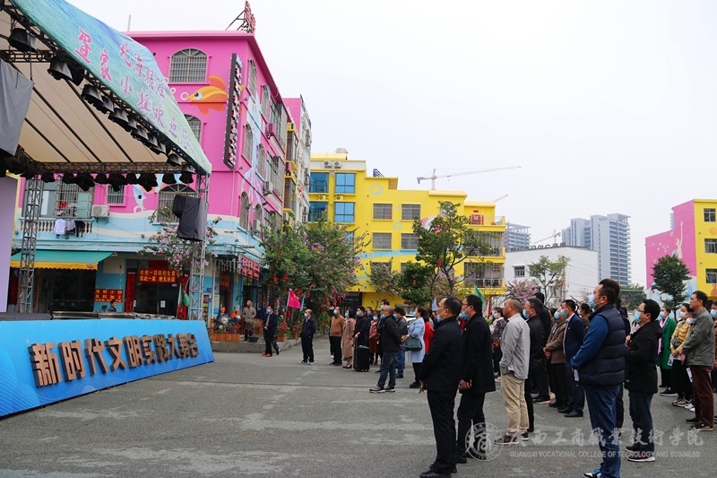 2021年3月4日下午,學院組織學習貫徹黨的十九屆五中全會精神培訓班全體學員赴疍家小鎮(zhèn)易地搬遷安置區(qū)、“僑之家”黨群服務中心等地開展現(xiàn)場教學活動,黨委書記覃武云、院長李維、黨委副書記蒙啟成、副院長安仲文、紀委書記韋云鳳、副院長闕勇平參加了本次學習活動。