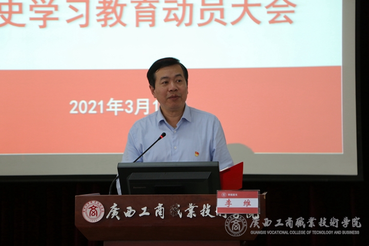 3月16日下午,我院黨史學習教育動員大會在鵬飛校區(qū)2145召開,學院黨委書記覃武云出席會議并作動員講話。學院領(lǐng)導、中層干部、全體在職教職工黨員及學生黨員代表、離退休黨支部書記及委員參加會議。學院院長李維主持會議。