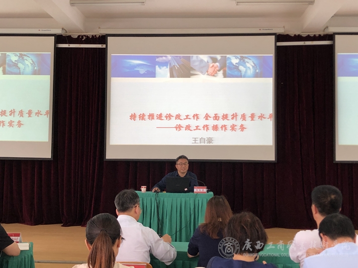 本次培訓(xùn)邀請(qǐng)廣西診改專(zhuān)家、廣西診改專(zhuān)委會(huì)秘書(shū)處具體工作負(fù)責(zé)人、廣西工業(yè)職業(yè)技術(shù)學(xué)院質(zhì)量監(jiān)控管理辦公室主任王自豪擔(dān)任主講人。王自豪以《持續(xù)推進(jìn)診改工作、全面提升質(zhì)量水平——診改工作操作實(shí)務(wù)》為題,結(jié)合廣西工業(yè)職業(yè)技術(shù)學(xué)院工作實(shí)際,圍繞“厘清幾個(gè)問(wèn)題、2021版全區(qū)診改復(fù)核方案修訂說(shuō)明、診改體系建設(shè)與運(yùn)行、績(jī)效考核”四個(gè)方面進(jìn)行了解讀,重點(diǎn)對(duì)診改復(fù)核工作的流程、重點(diǎn)、注意事項(xiàng)及意義等進(jìn)行了說(shuō)明。