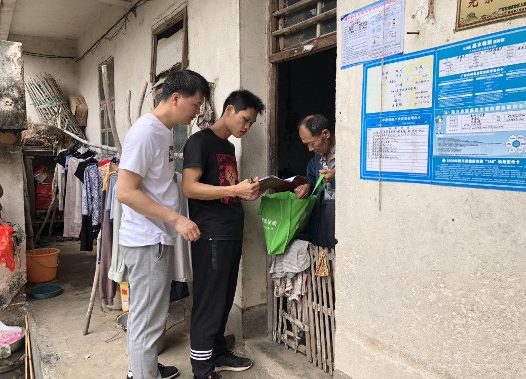 (八角村第一書記陸惠鋒、駐村工作隊員凌勇明走訪農(nóng)戶及收幫扶手冊)