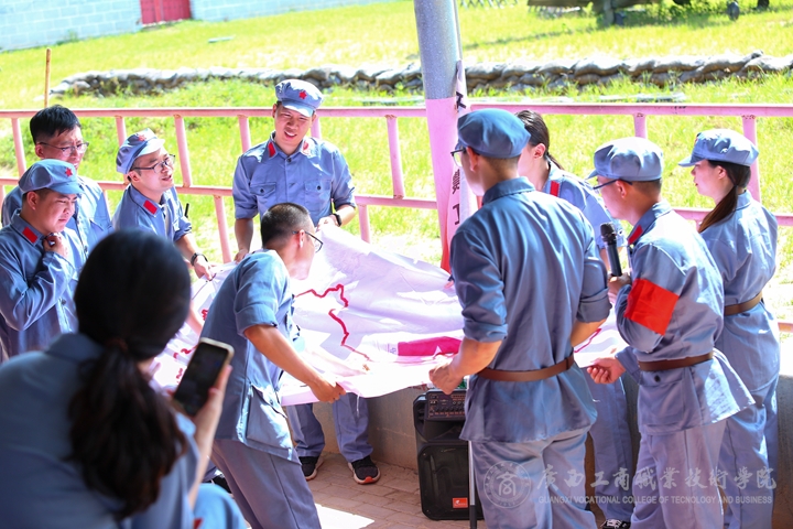培訓(xùn)班還組織開展了體驗(yàn)教學(xué)環(huán)節(jié)。6月18日,學(xué)員們身著紅軍服、手握紅纓槍,現(xiàn)場(chǎng)“重走長(zhǎng)征路”,分組建立各路方面軍,模擬體驗(yàn)了瑞金出征、湘江戰(zhàn)役、遵義會(huì)議、飛奪瀘定橋、重走長(zhǎng)征路、勝利大會(huì)師等長(zhǎng)征歷史中可歌可泣的故事,為中國(guó)共產(chǎn)黨成立100周年獻(xiàn)禮。
