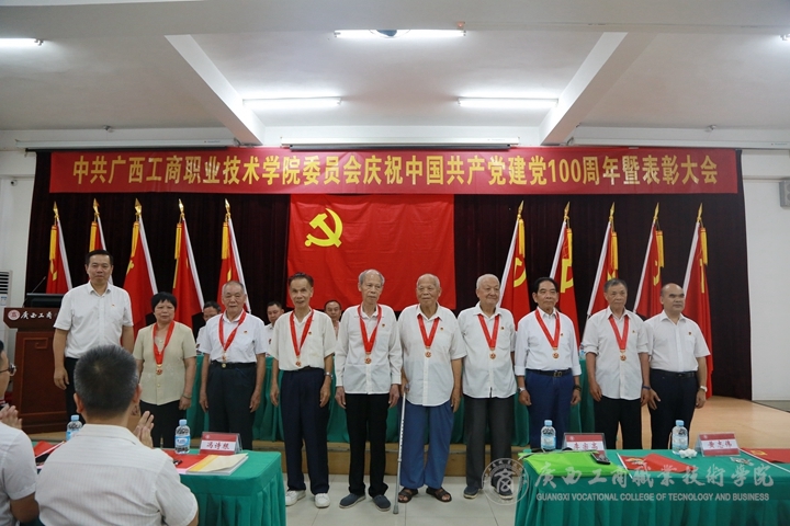 學(xué)院領(lǐng)導(dǎo)和榮獲“光榮在黨50年”紀(jì)念章老黨員代表合影