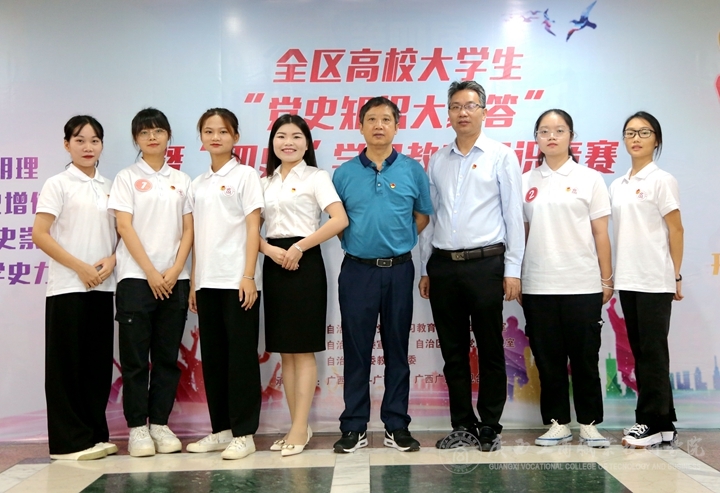 10月11號(hào)上午,全區(qū)高校大學(xué)生“黨史知識(shí)大家答”暨“四史”學(xué)習(xí)教育知識(shí)競(jìng)賽復(fù)賽在廣西廣播電視臺(tái)舉行,我院周婷婷、李紫欣、劉錦燦、王健玲、羅玉杏五位同學(xué)代表學(xué)院參加比賽。比賽在廣西云等平臺(tái)現(xiàn)場(chǎng)直播。學(xué)院副院長(zhǎng)安仲文到現(xiàn)場(chǎng)觀看比賽。