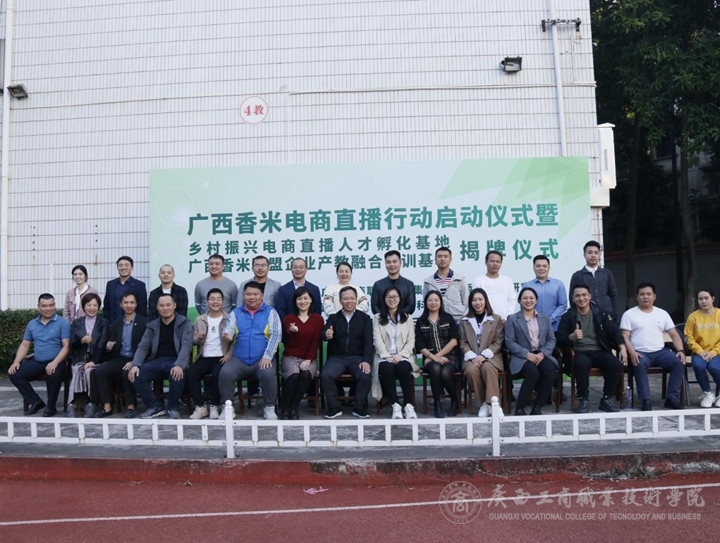 為推進(jìn)學(xué)校產(chǎn)教融合、校企合作水平,有效提升我校電商專業(yè)學(xué)生職業(yè)技能,更好服務(wù)廣西香米聯(lián)盟企業(yè),11月18日下午,由廣西香米產(chǎn)業(yè)研究院聯(lián)合廣西糧食行業(yè)協(xié)會(huì)、廣西香米聯(lián)盟企業(yè)、廣州綠田園農(nóng)業(yè)科技有限責(zé)任公司承辦的廣西香米電商直播行動(dòng)啟動(dòng)儀式暨鄉(xiāng)村振興電商直播人才孵化基地、廣西香米聯(lián)盟企業(yè)產(chǎn)教融合實(shí)訓(xùn)基地揭牌儀式在我校中堯校區(qū)成功舉辦。學(xué)院副院長(zhǎng)闕勇平、廣西香米產(chǎn)業(yè)研究院副院長(zhǎng)張煌強(qiáng)、廣州綠田園農(nóng)業(yè)科技有限公司副董事長(zhǎng)戴春燕、廣西糧食行業(yè)協(xié)會(huì)副秘書長(zhǎng)羅桂嬌及十八家廣西香米產(chǎn)業(yè)聯(lián)盟企業(yè)代表參加儀式。