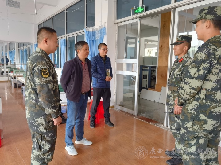 隨后,在安副院長(zhǎng)的陪同下,謝副主任檢查了學(xué)生軍訓(xùn)情況,查看了教官們的住宿情況,與教官們進(jìn)行了親切交流,鼓勵(lì)教官克服困難,帶好學(xué)生,圓滿完成軍訓(xùn)工作。