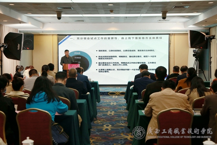自治區(qū)教育廳覃壯才處長(zhǎng)在講話中充分肯定了今年廣西1+X證書制度試點(diǎn)工作取得的成績(jī),并就2022年的工作進(jìn)行了全面部署,提出了具體的要求。一是要提高認(rèn)識(shí),充分領(lǐng)會(huì)試點(diǎn)工作的重要性,自上而下落實(shí)各方主體責(zé)任;二是要建立事中事后的監(jiān)管機(jī)制,形成完整的證書試點(diǎn)工作體系;三是要完善制度,建立健全試點(diǎn)工作的長(zhǎng)效機(jī)制;四是要優(yōu)化人才培養(yǎng)方案,繼續(xù)深化課證融通;五是要以證促研,深化1+X證書制度科學(xué)研究,輸出高質(zhì)量有標(biāo)志性的階段性成果;六是要培訓(xùn)評(píng)價(jià)組織應(yīng)進(jìn)一步規(guī)范試點(diǎn)工作流程。