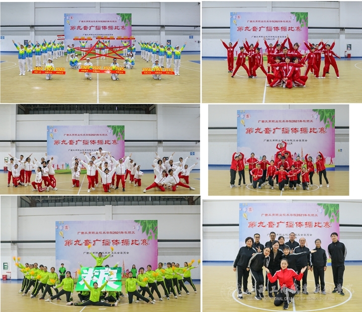 2021年12月21日,學(xué)院2021年教職工第九套廣播體操比賽在文體館二樓舉辦,我院8個工會分會、9個直屬工會小組職工代表共16支隊伍400余人參賽。學(xué)院黨委副書記、工會主席蒙啟成出席本次比賽活動。本次大賽聘請校外3位專家作為裁判,裁判長由廣西大學(xué)教授、南寧市體操協(xié)會副主席,國家級裁判鄧艷香擔(dān)任。