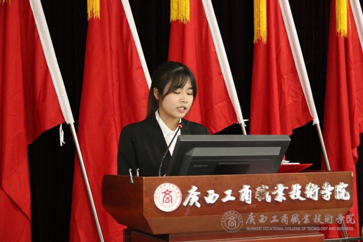 學院團委書記王娟同志代表共青團廣西工商職業(yè)技術(shù)學院第二屆委員會向大會作《青春心向黨奮斗為強國團結(jié)帶領(lǐng)廣商院青年在新征程中擔當作為》的工作報告。?