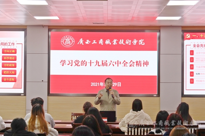 為進(jìn)一步學(xué)習(xí)宣傳貫徹黨的十九屆六中全會(huì)精神。2021年12月29日,學(xué)院黨委副書(shū)記蒙啟成深入聯(lián)系的班級(jí)、社團(tuán)開(kāi)展黨的十九屆六中全會(huì)精神主題宣講會(huì)。學(xué)院大學(xué)生記者團(tuán)成員、信設(shè)學(xué)院視覺(jué)2107班全體同學(xué)和班級(jí)輔導(dǎo)員及社團(tuán)指導(dǎo)教師陳寧參加本次會(huì)議。