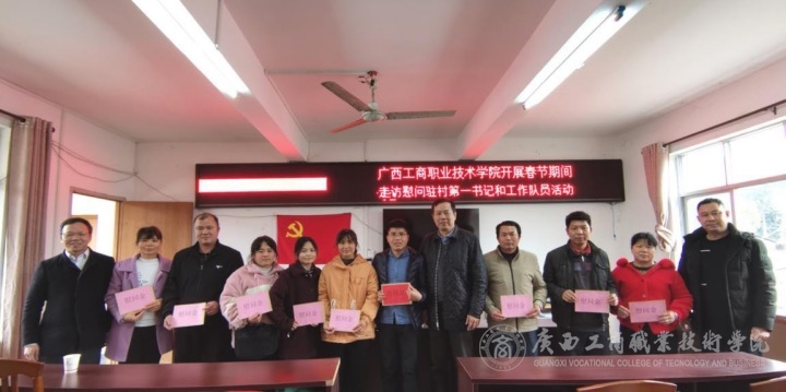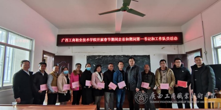 2022年1月20日,學(xué)院院長李維率隊,副院長陳寧春、副院長闕勇平及黨委辦公室、黨委組織部、教務(wù)處、科研規(guī)劃處、招生就業(yè)工作處、學(xué)院團(tuán)委、計劃財務(wù)處、糧油康旅學(xué)院、繼續(xù)教育學(xué)院、通識教育學(xué)院、教學(xué)督導(dǎo)室一行15人,赴陸川縣四樂村、靖西村慰問第一書記和村干部。