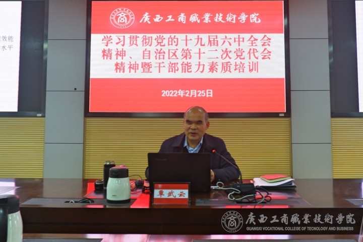 為深入學(xué)習(xí)貫徹黨的十九屆六中全會(huì)精神、自治區(qū)第十二次黨代會(huì)精神,進(jìn)一步加強(qiáng)中層管理干部黨性修養(yǎng),強(qiáng)化黨員教育管理,加快推進(jìn)學(xué)院教育事業(yè)發(fā)展,2022年2月25日上午,我院在鵬飛校區(qū)舉辦學(xué)習(xí)貫徹黨的十九屆六中全會(huì)精神、自治區(qū)第十二次黨代會(huì)精神暨干部能力素質(zhì)培訓(xùn)。學(xué)院領(lǐng)導(dǎo)、學(xué)院紀(jì)委委員、中層領(lǐng)導(dǎo)干部、各黨總支、各直屬黨支部書記、委員、組織員等參加此次培訓(xùn)。