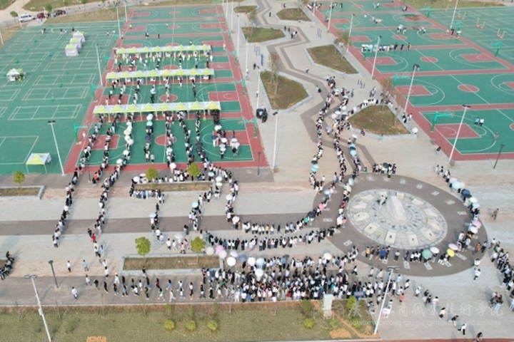 (武鳴校區(qū)有序核酸檢測現(xiàn)場鳥瞰圖? 財金學院供圖)