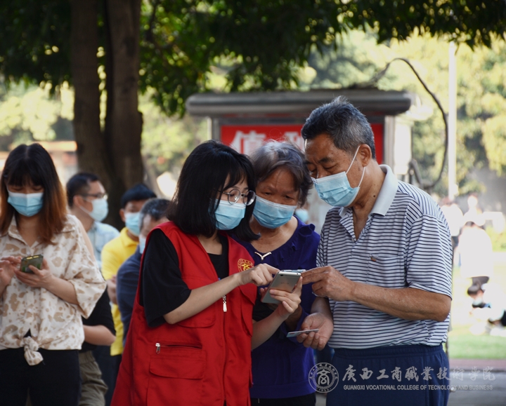 (中堯校區(qū)志愿者幫助居民提前申領(lǐng)南寧電子健康卡)