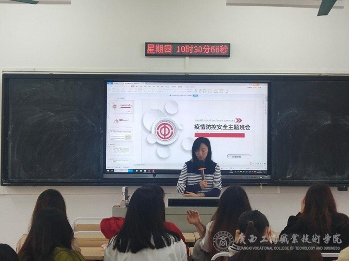 (圖為經(jīng)貿(mào)學(xué)院輔導(dǎo)員石玉珍召開“雙節(jié)”疫情防控和安全穩(wěn)定主題班會)