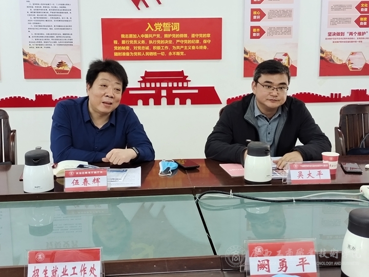 4月21日上午,自治區(qū)教育廳副廳長伍春輝一行到我院開展就業(yè)創(chuàng)業(yè)工作專題調(diào)研,學(xué)院副院長闕勇平主持召開調(diào)研座談會(huì),學(xué)院招生就業(yè)工作處、各二級(jí)學(xué)院負(fù)責(zé)人參加會(huì)議。
