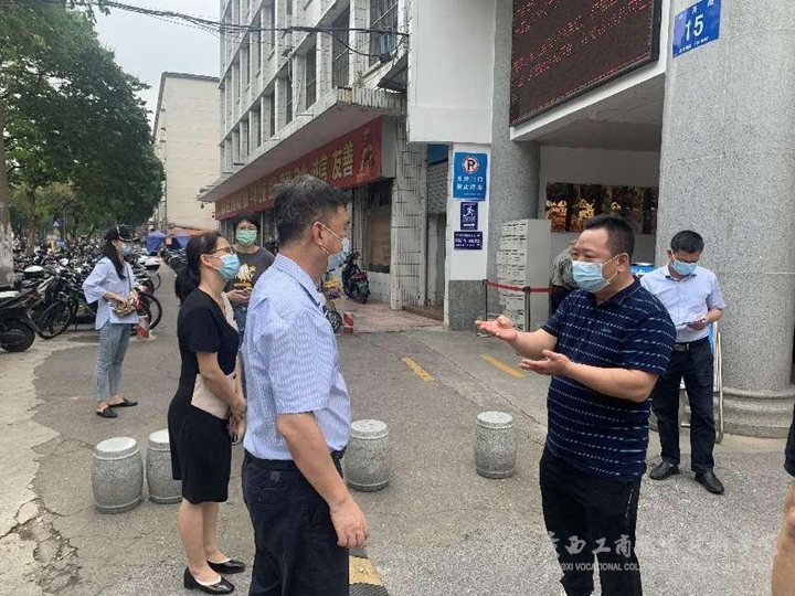4月28日,西鄉(xiāng)塘區(qū)疫情防控指揮部督察組到我院中堯校區(qū)檢查指導(dǎo)疫情防控及校園封閉管理工作落實(shí)情況。城區(qū)人大調(diào)研員盧致林、人大農(nóng)環(huán)建工委黃開朗主任、新陽街道辦事處副主任梁雪梅帶隊(duì)督察,我院后勤管理處書記莫春華同志就我校疫情防控工作中的具體做法和措施進(jìn)行匯報(bào)。