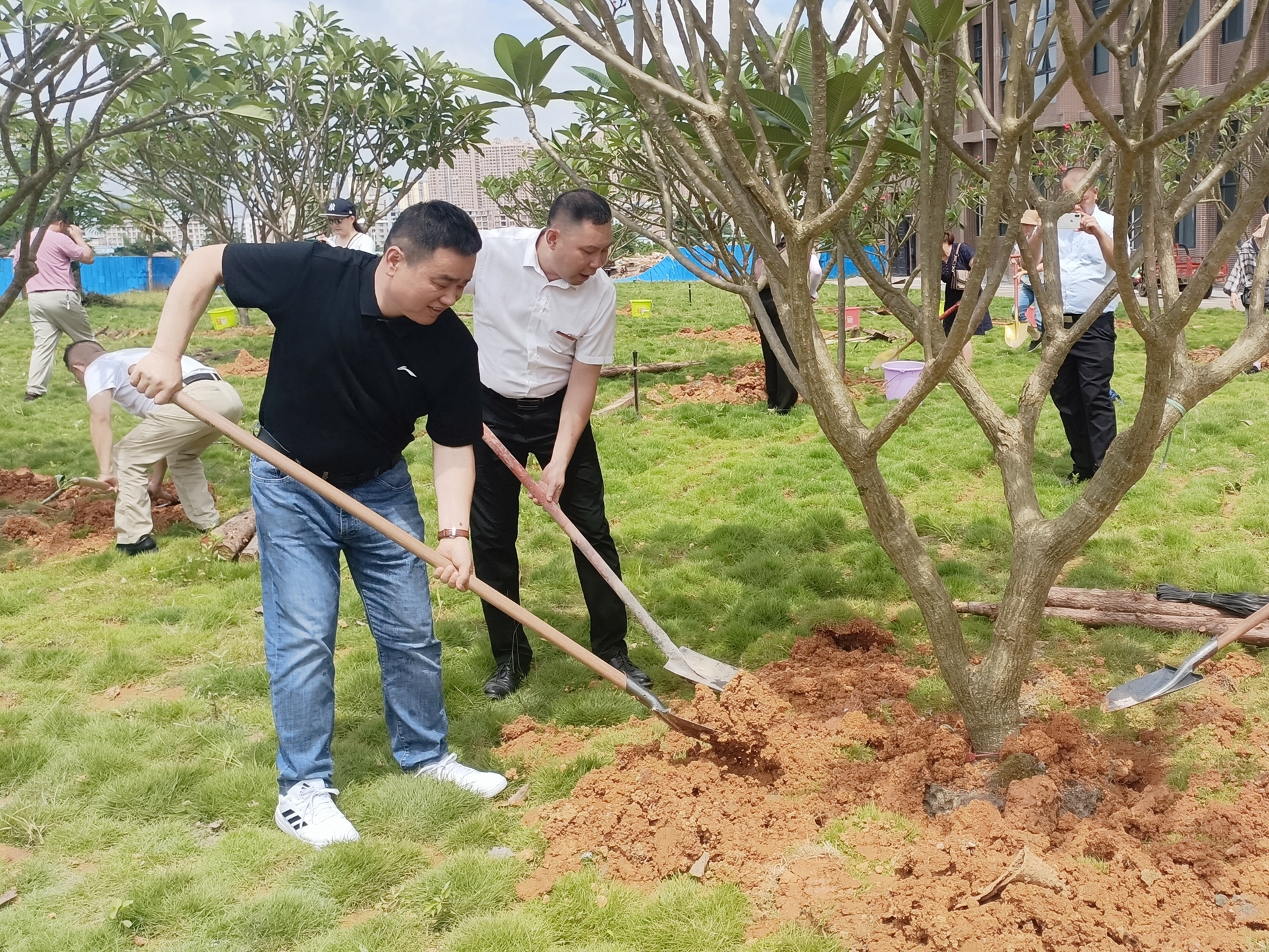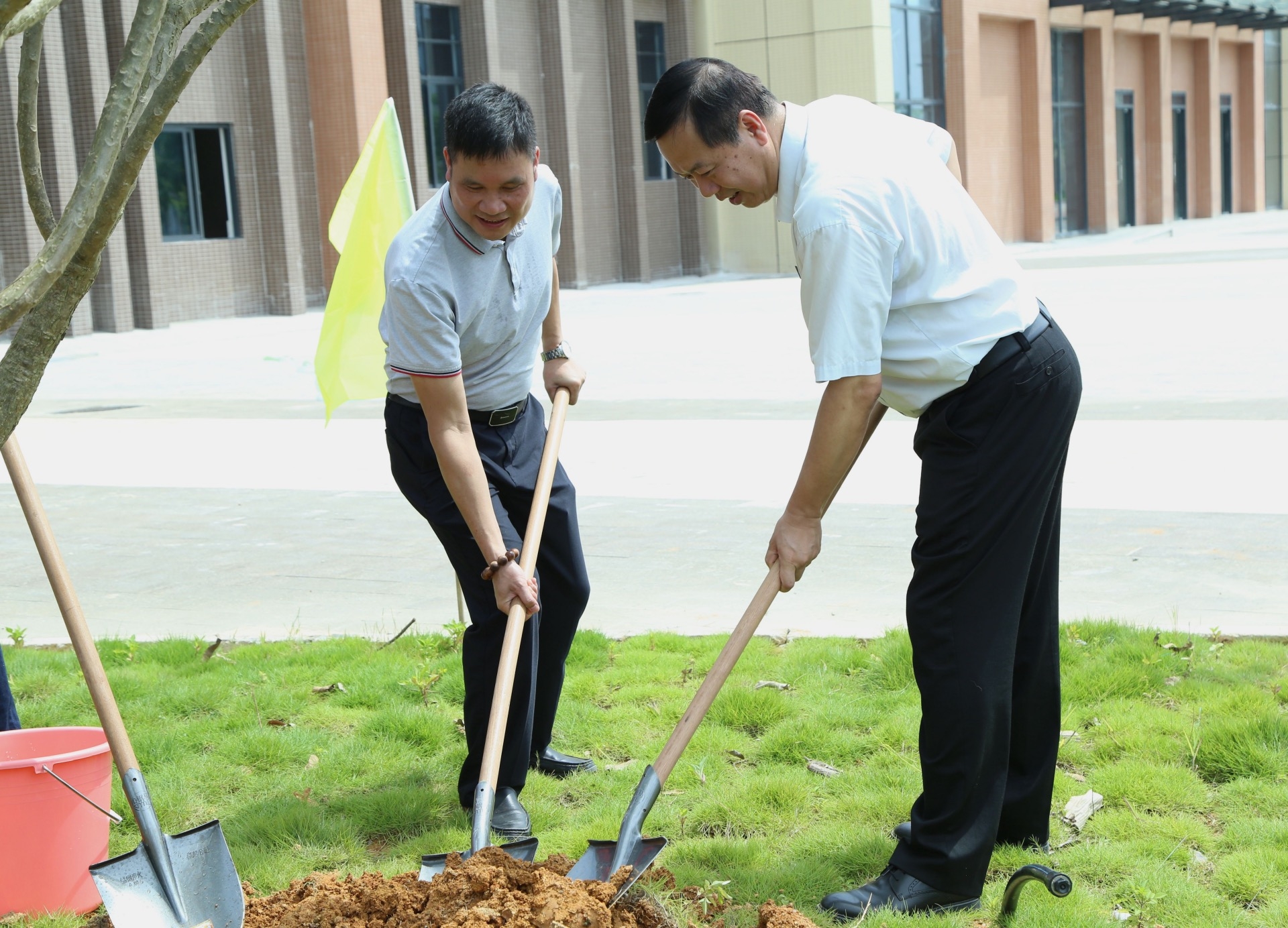在歡快的氣氛中,學(xué)院領(lǐng)導(dǎo)和校友代表共同為校友林舉行了揭幕儀式,并一同為校友們捐贈的孕育希望的緬梔子樹苗培土澆水。