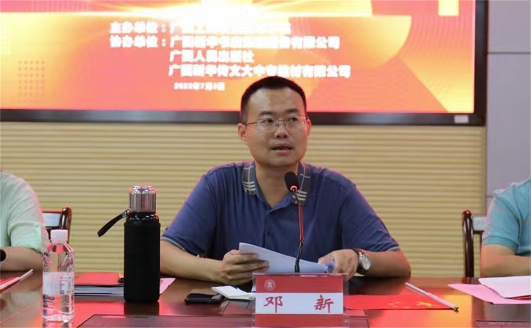 2022年7月3日,“立德樹(shù)人潤(rùn)青心 經(jīng)典書(shū)香育心人”紅色閱讀分享交流會(huì)在我院2119會(huì)議室舉行,自治區(qū)黨員教育中心四級(jí)調(diào)研員鄧新、廣西人民出版社副社長(zhǎng)蔣文娜、廣西新華傳文大中專(zhuān)教材公司總經(jīng)理廖愛(ài)娟到我校參加分享會(huì)。學(xué)院副院長(zhǎng)安仲文、學(xué)院團(tuán)委相關(guān)老師及青年馬克思主義培養(yǎng)工程培訓(xùn)班全體學(xué)員共同出席本次會(huì)議。