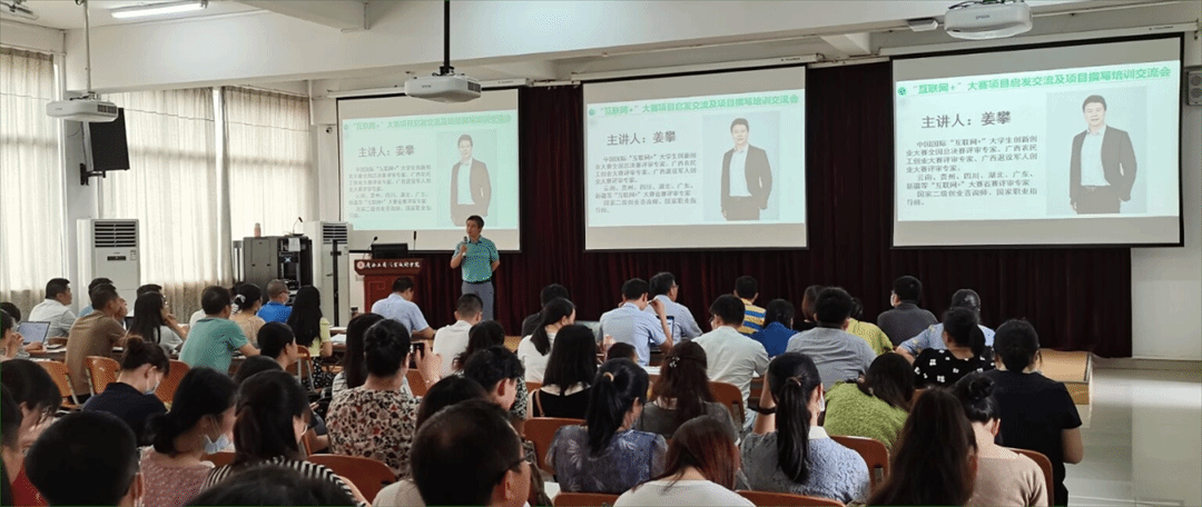 在專題講座環(huán)節(jié),來自廣西建設(shè)職業(yè)技術(shù)學(xué)院的國家二級創(chuàng)業(yè)咨詢師、中國國際“互聯(lián)網(wǎng)+”大學(xué)生創(chuàng)新創(chuàng)業(yè)大賽全國總決賽評審專家姜攀副教授帶來了“互聯(lián)網(wǎng)+”大學(xué)生創(chuàng)新創(chuàng)業(yè)大賽經(jīng)驗分享專題講座。姜攀副教授結(jié)合自身參賽以及擔(dān)任評委的經(jīng)歷,就“互聯(lián)網(wǎng)+”大學(xué)生創(chuàng)新創(chuàng)業(yè)大賽在備賽、參賽環(huán)節(jié)的重點事項進行了經(jīng)驗分享。