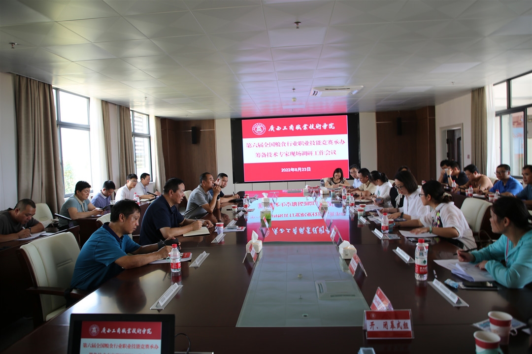 2022年8月23日上午,學(xué)院在武鳴校區(qū)召開第六屆全國(guó)糧食行業(yè)職業(yè)技能競(jìng)賽承辦籌備工作現(xiàn)場(chǎng)調(diào)研會(huì)。學(xué)院領(lǐng)導(dǎo),各專項(xiàng)工作組組長(zhǎng)、副組長(zhǎng),競(jìng)賽籌備辦公室全體工作人員等人員參加會(huì)議。李維院長(zhǎng)出席現(xiàn)場(chǎng)調(diào)研會(huì)并主持會(huì)議 。