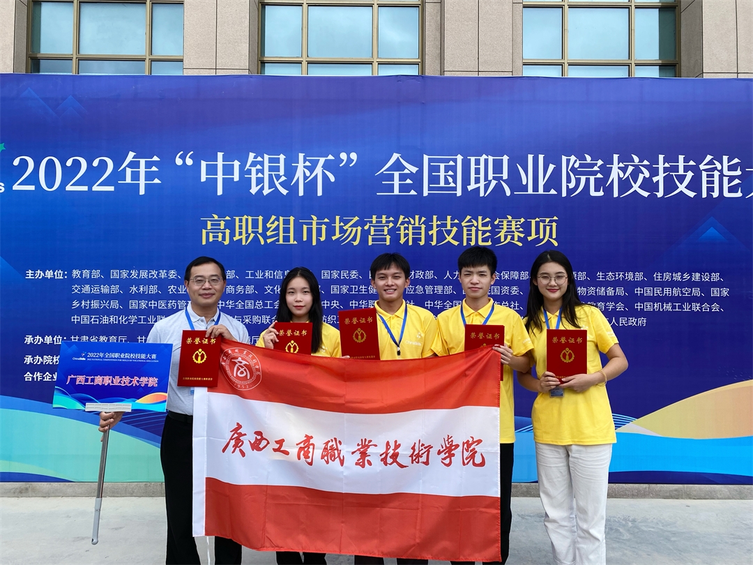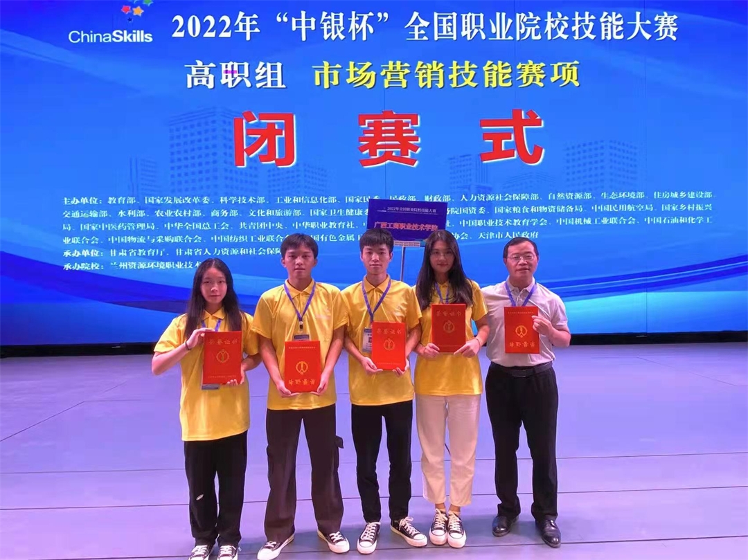 2022年8月25—26日,由教育部等多個部門聯(lián)合主辦的2022年全國職業(yè)院校技能大賽高職組“市場營銷技能”賽項在甘肅蘭州資源環(huán)境職業(yè)技術(shù)大學舉行。經(jīng)過緊張激烈角逐,由劉結(jié)玲、張煌強兩位老師指導,馬志才、熊孟杰、趙嘉林、陳心雨四位同學組成的團隊代表廣西壯族自治區(qū)參賽,經(jīng)過兩天全力比拼,在全國56所高職院校中脫穎而出,喜獲二等獎。