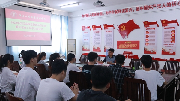 11月9日上午,以廣西民族大學(xué)黨委副書記陳銘彬教授為組長的全區(qū)高校思想政治理論課教學(xué)巡察組專家一行四人蒞臨我院巡察指導(dǎo)思想政治理論課建設(shè)情況。本次巡察工作的主要內(nèi)容有黨的二十大精神進(jìn)課堂的落實(shí)情況、習(xí)近平新時代中國特色社會主義思想概論課開設(shè)情況、中央和自治區(qū)關(guān)于深化新時代學(xué)校思想政治理論課改革創(chuàng)新相關(guān)文件的貫徹落實(shí)情況以及思想政治理論課建設(shè)的相關(guān)重要指標(biāo)落實(shí)情況。