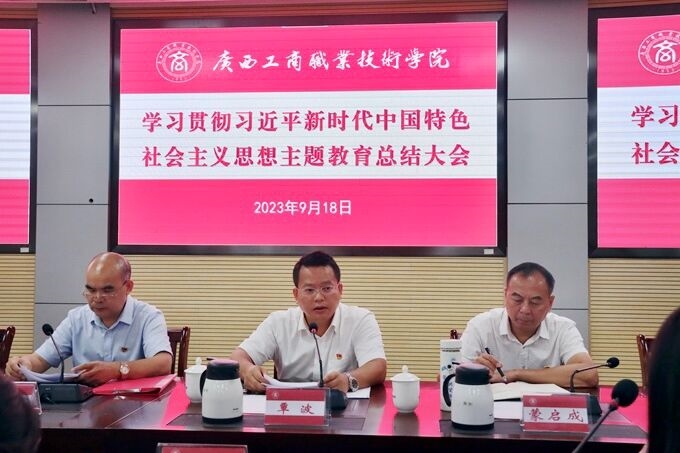 9月18日上午,廣西工商職業(yè)技術學院學習貫徹習近平新時代中國特色社會主義思想主題教育總結大會在鵬飛校區(qū)召開。會議認真學習貫徹中央、自治區(qū)主題教育第一批總結暨第二批部署會議精神,全面深化總結學院主題教育成果,深入分析查找不足,并對鞏固深化主題教育成果進行部署。學院黨委書記覃武云主持會議并代表學院黨委作主題教育總結報告,自治區(qū)黨委第十二巡回指導組成員覃波到會指導并講話。