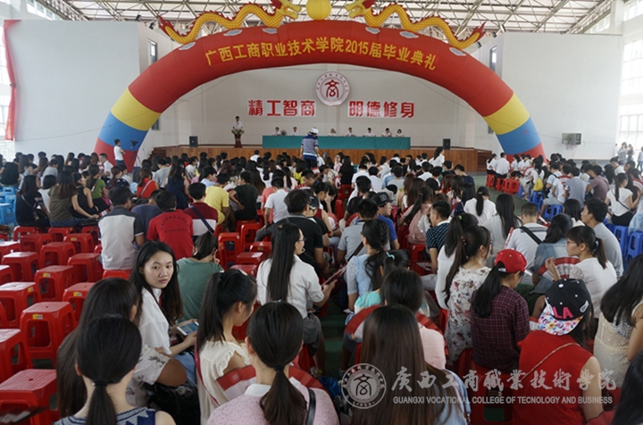 2015年6月27日下午15點,廣西工商職業(yè)技術(shù)學(xué)院2015屆畢業(yè)生典禮在我院校本部文體館二樓隆重舉行。學(xué)院領(lǐng)導(dǎo)班子全體成員及學(xué)院各部門主要負(fù)責(zé)人出席,2015屆各班畢業(yè)生及班主任參加。畢業(yè)典禮由李仕欽副院長主持。