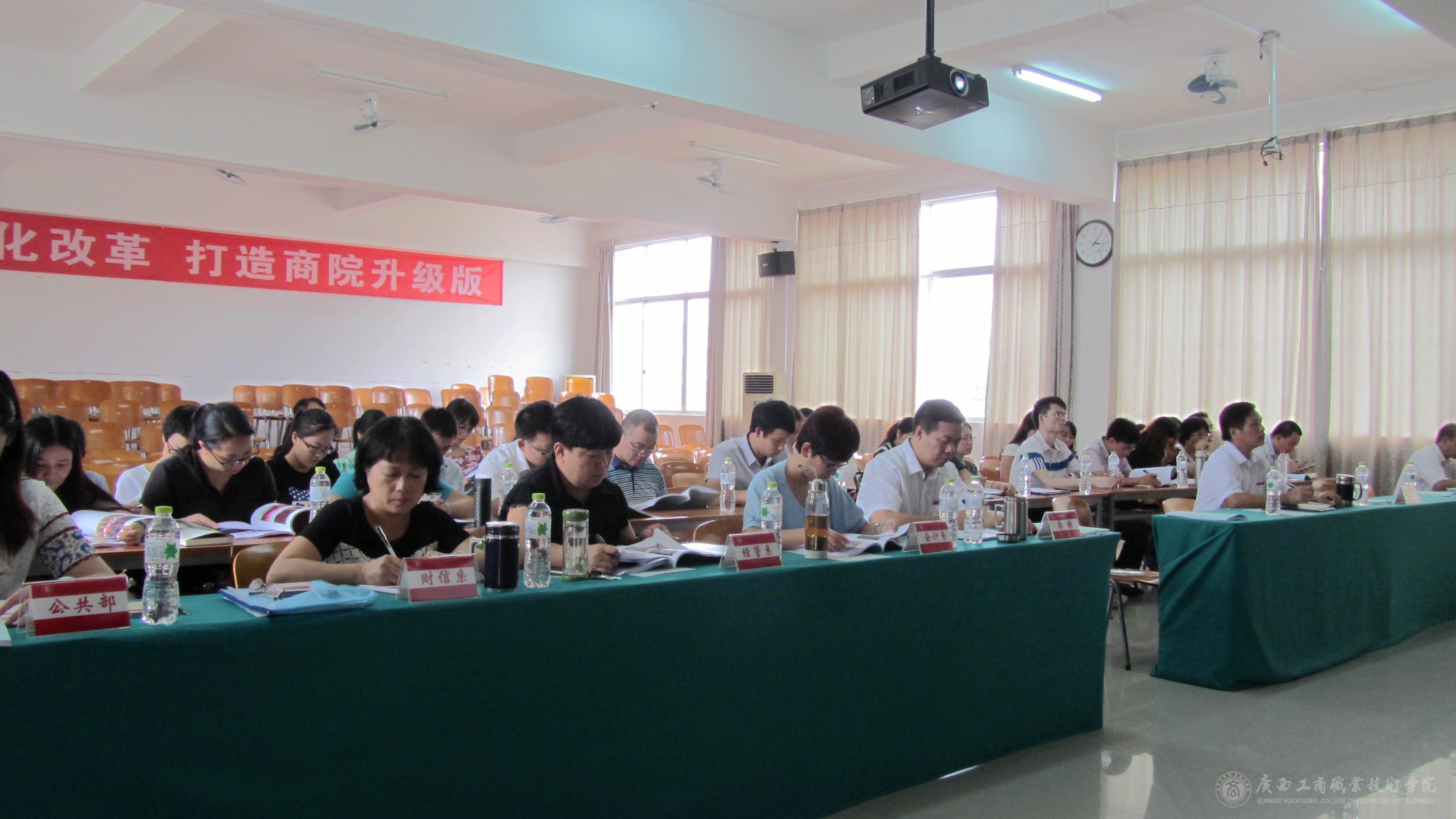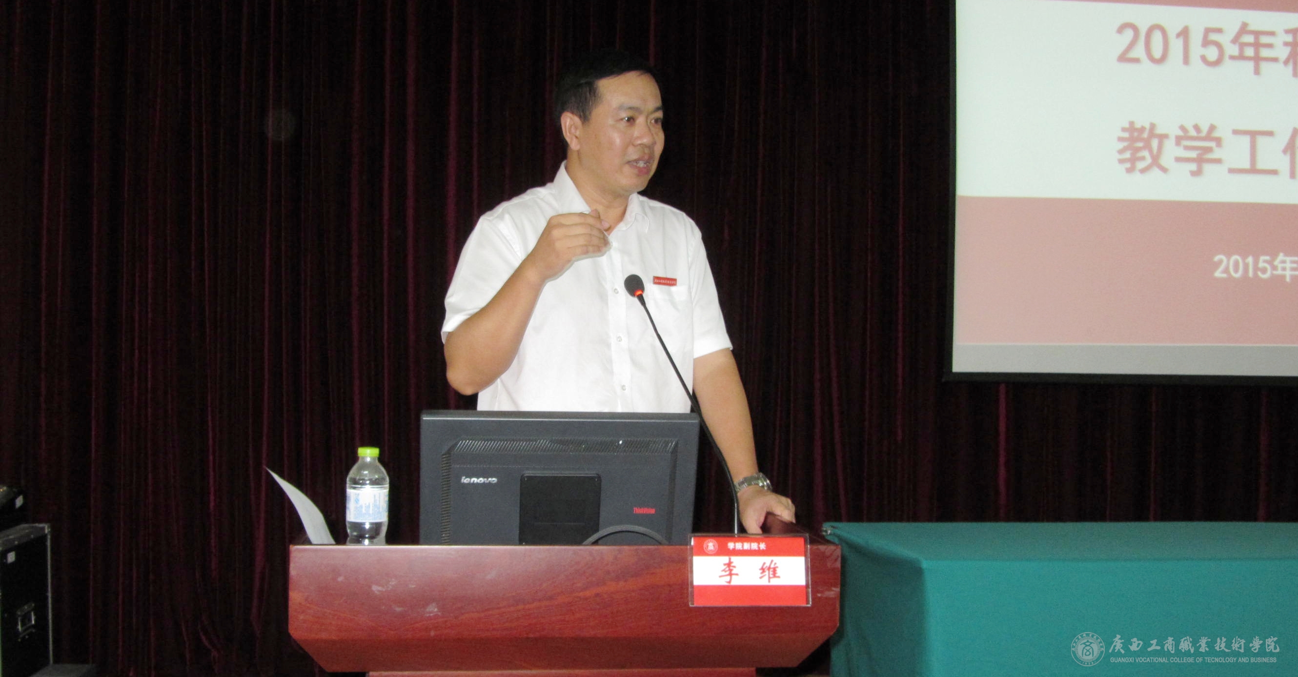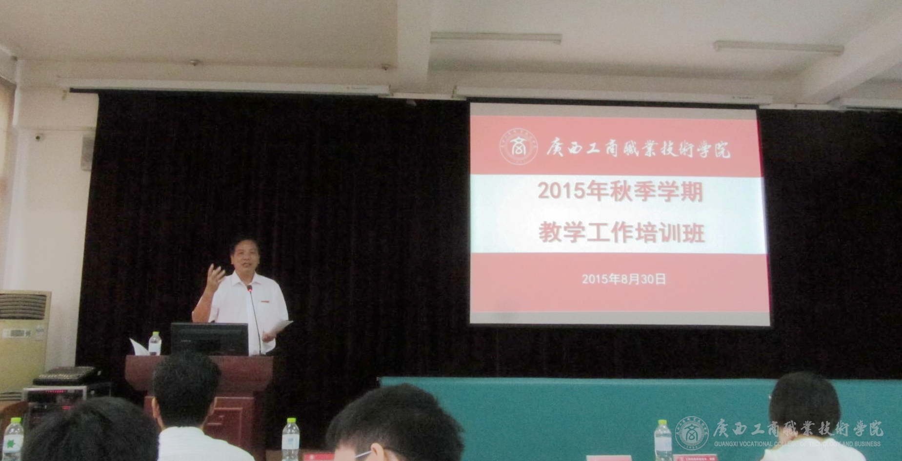 2015年8月30日下午,我院在校本部教學樓2145報告廳舉辦2015年秋季培訓周教學工作培訓班。學院領導李維副院長,現(xiàn)教中心、督導室領導,各系(部)主任、教學副主任,教研室正副主任、專業(yè)帶頭人、課程負責人、教學秘書及教務科研處全體人員參加了培訓班。培訓班由教務科研處韋勝強處長主持。