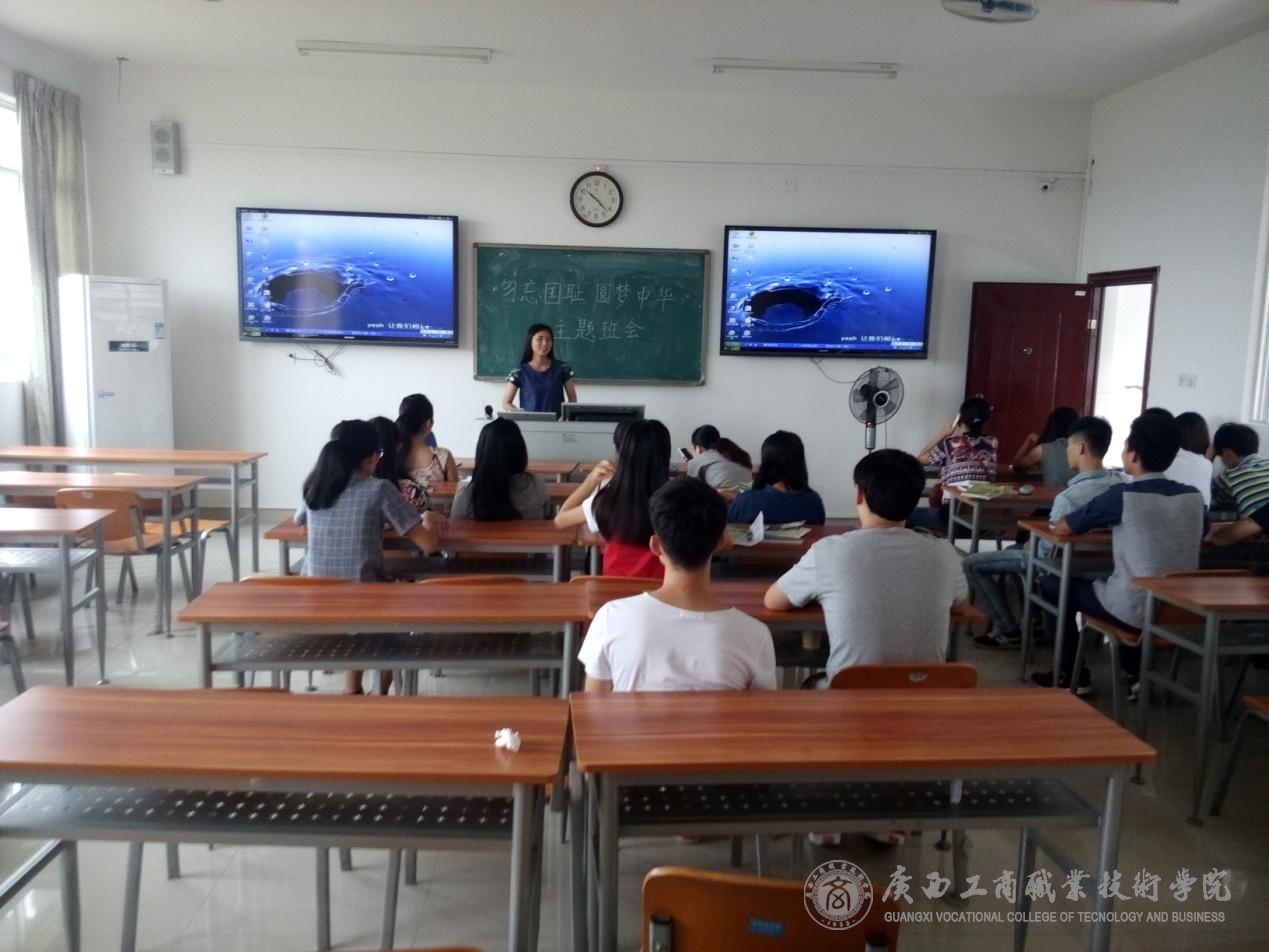 圖為營銷1431班班主任劉結玲老師組織召開班級會議