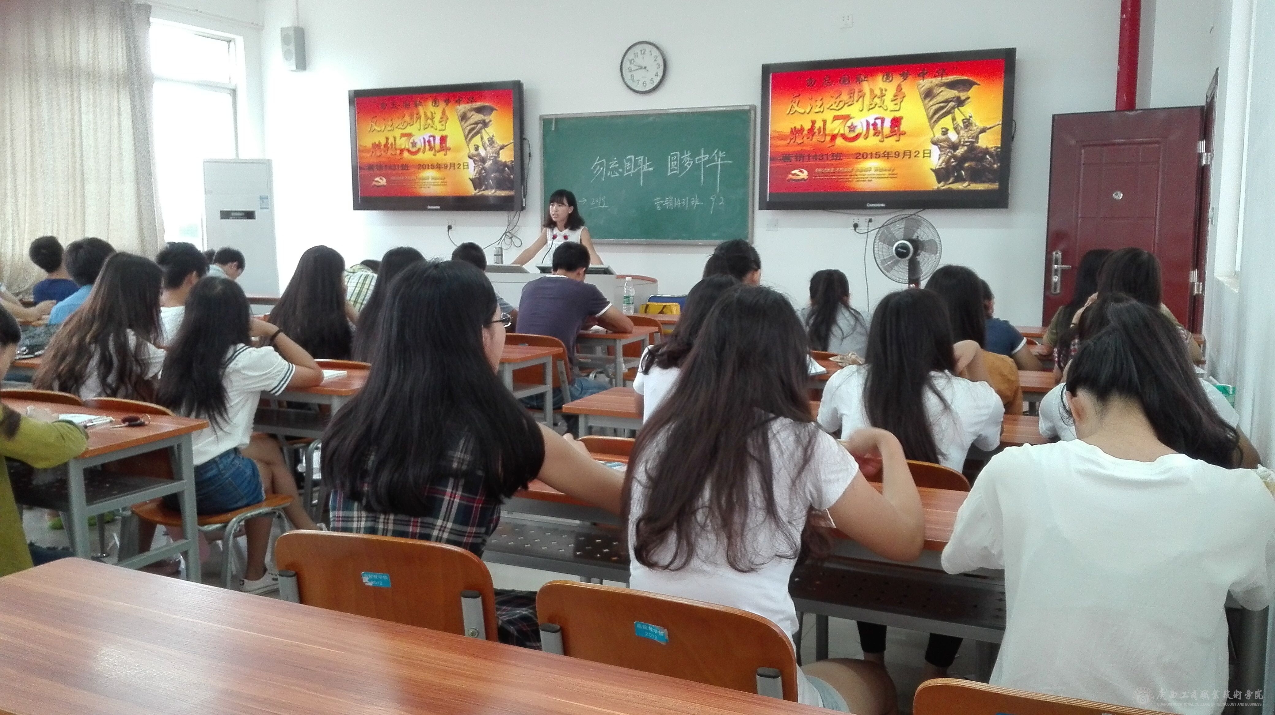 抗日戰(zhàn)爭暨反法西斯戰(zhàn)爭勝利70周年大閱兵在即,為弘揚偉大的抗戰(zhàn)精神,唱響愛黨、愛國、愛社會主義的時代主旋律,激發(fā)正能量,培養(yǎng)廣大師生的愛國情感,銘記慘痛歷史,珍惜當下,為實現(xiàn)偉大的中國夢而努力奮斗,我系領導高度重視,并于開學第一周積極組織師生開展抗戰(zhàn)勝利70周年系列教育活動。