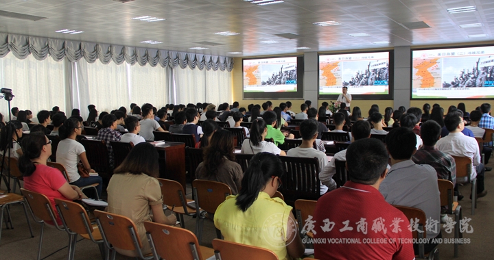 2015年9月14日下午,學院院長陳杰教授的第一堂思想政治理論課暨院長公開課在2214視頻會議室進行。學院黨委覃武云書記、蒙啟成副書記、李維副院長、韋勝強處長、各系部領導、各專業(yè)負責人以及社科部全體教師和營策1502、物流1503、工商1507班全體同學聆聽了本次公開課。