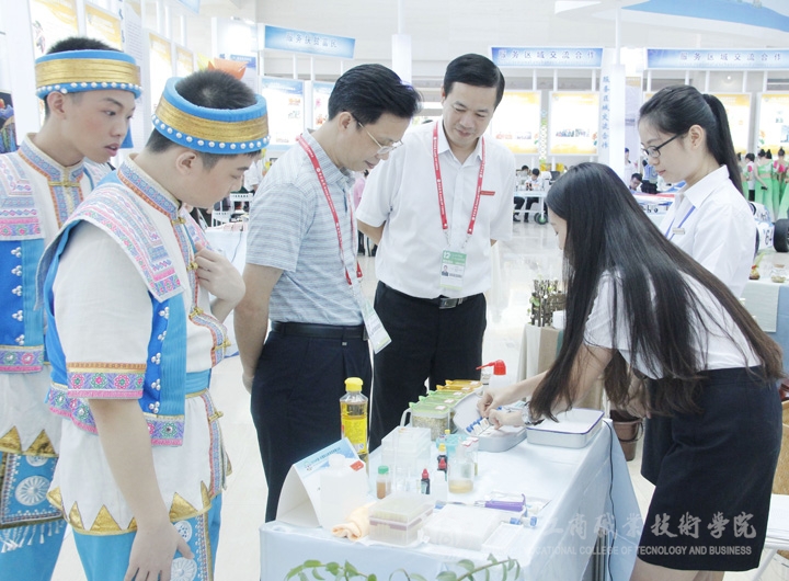 自治區(qū)高校工委書記、教育廳廳長秦斌參觀展臺